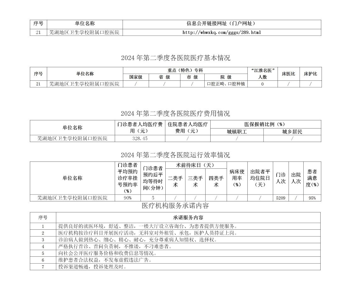 2024年第二季度医疗服务信息社会公开内容